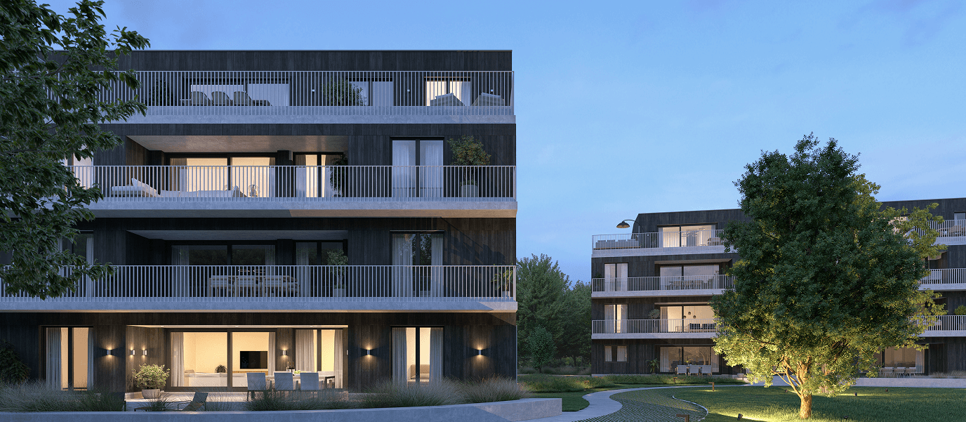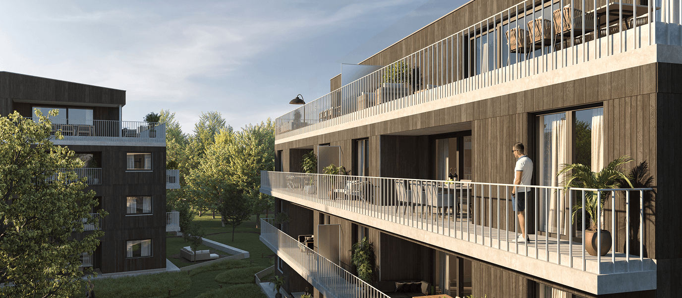 Elk appartement is ontworpen met een focus op licht en ruimte. Dankzij de vier bouwlagen en doordachte materiaalkeuzes integreren de gebouwen naadloos met de omliggende natuur.