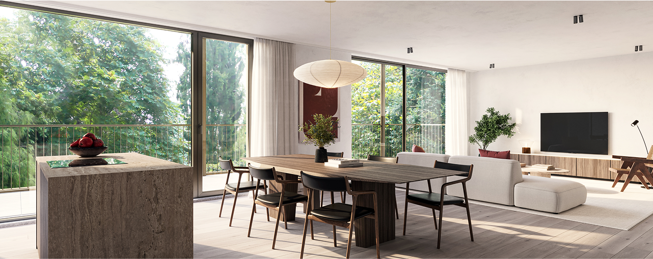 Roosgaerd biedt 2- en 3-slaapkamerappartementen, verdeeld over twee nieuwbouwvolumes rondom de centraal gelegen villa. Alle appartementen zijn uitgerust met ultramoderne voorzieningen voor een verfijnde levensstijl.