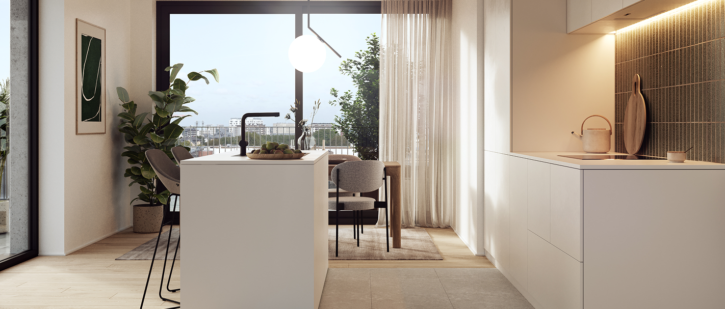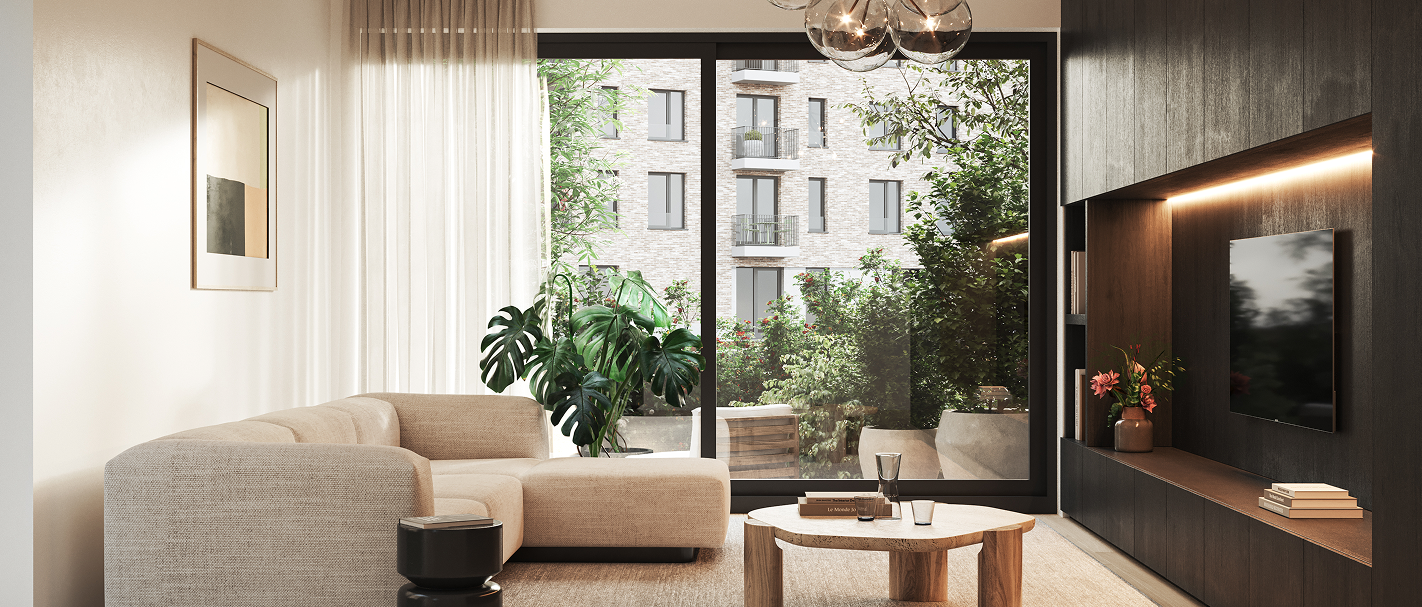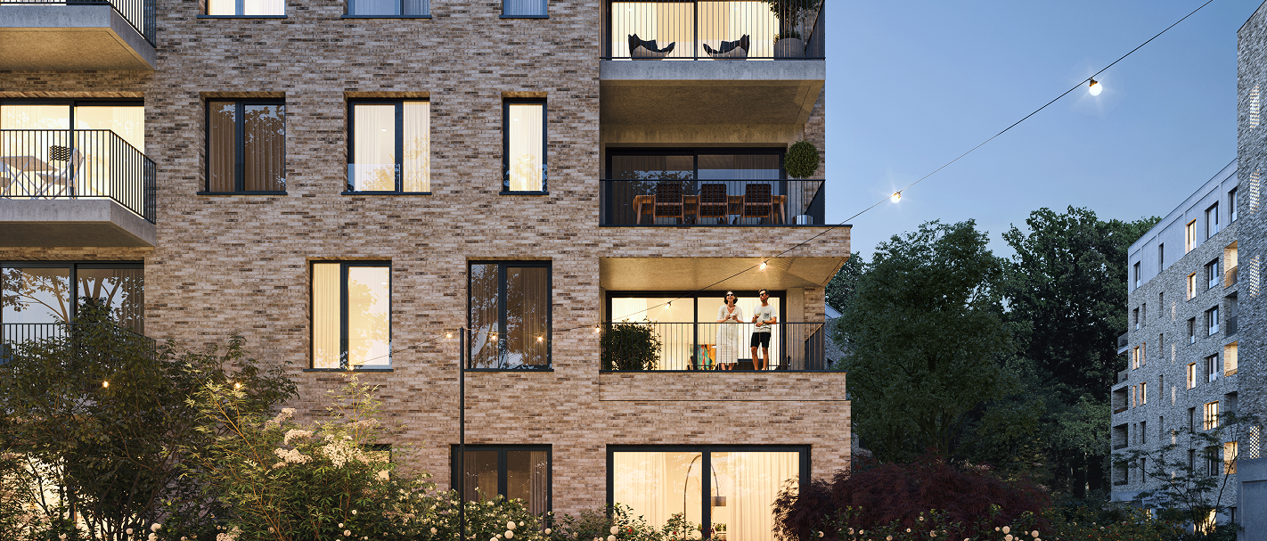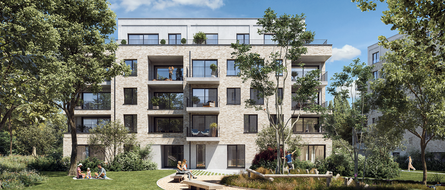 Les bâtiments sont répartis autour d'un jardin intérieur exceptionnellement grand, offrant beaucoup de verdure, d'intimité et d'espaces de rencontre. Chaque appartement est intelligemment agencé et bénéficie de finitions de qualité, avec une attention particulière portée à la lumière, à l'espace et à la vue. Les bâtiments sont équipés de technologies durables telles que des toits verts, des panneaux solaires et un système de récupération des eaux de pluie, ce qui garantit de faibles coûts énergétiques et une expérience de vie tournée vers l'avenir.