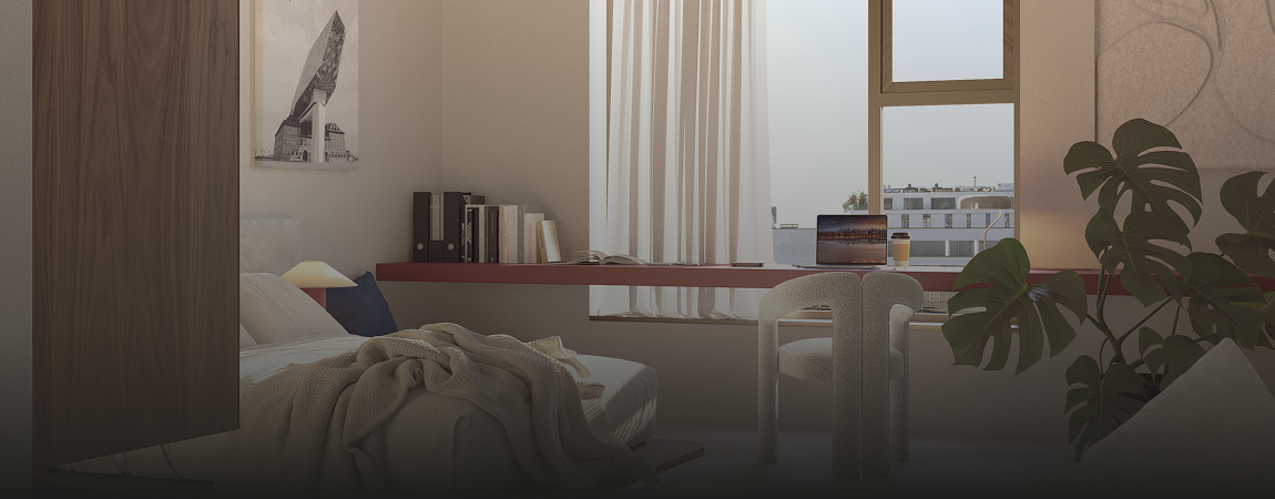 Met aandacht voor diversiteit, inclusie en betekenisvol design creëert zij interieurs die verfijnd, functioneel en warm zijn – perfect voor hedendaagse studenten die meer zoeken dan enkel een kamer.