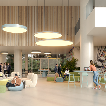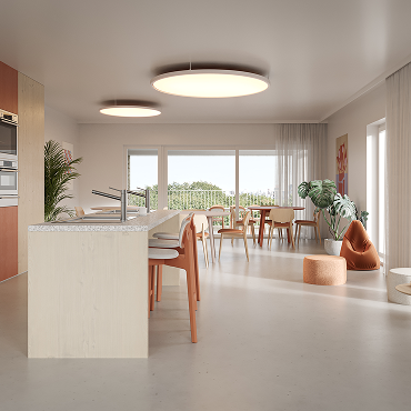Private flats met gemeenschappelijke ruimtes voor studie en ontspanning.