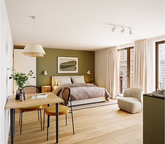 Op slechts 50 meter van de Leie en vlak bij het Koningin Astridpark investeert u in 21 volledig afgewerkte studio’s, professioneel uitgebaat door Limehome – de Europese marktleider in short stay verhuur.